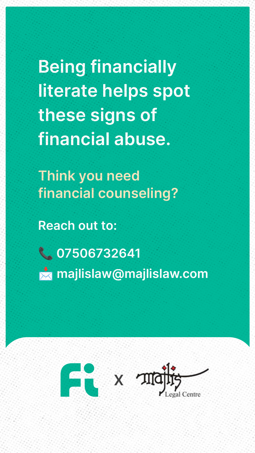 Launched on Women’s Day, the campaign saw significant traction across social media and quickly gained widespread attention. Building on this momentum, Fi later integrated the initiative into their app through an AI-powered bot, allowing users to ask direct questions such as “What is financial abuse?” or “What can I do if I’m in a financially abusive relationship?”. In partnership with Majlis, they also created actionable resources to support users seeking help.