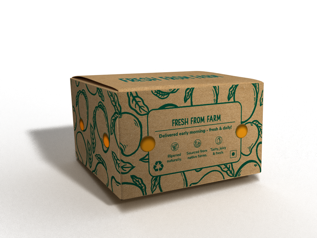 The Goal of the project was to Design a packaging solution for fruits and vegetables (F&V) in the form of a paper box in a natural color. The printing process will utilize a single color directly onto the packaging, with dimensions of L-20cm, W-14.5cm, H-12cm. The packaging must convey premium quality and effectively communicate the Reasons to Believe (RTBs) of our products. To align with our whole produce offerings, avoid depicting sliced fruits and vegetables, opting instead for bolder, simplified images with bold outlines. The box should serve a generic purpose and may feature various fruits and vegetables to represent our diverse product range, ensuring clarity and visual impact given the single-color printing process.