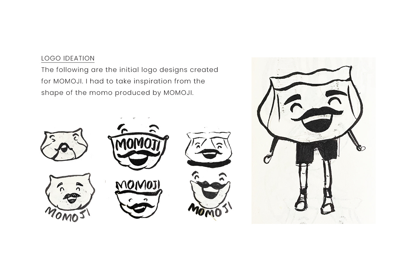 Viplavam food labs approached me with their plan to start a momo brand and their need to do branding for it. They are a B2B business outlet that mass manufacture momos and supplies to local stores across Trivandrum. Viplavam Food Labs wanted a logo that is FUN, RELATABLE, and EXPRESSIVE.As per the requirement, I designed a logo that was inspired by the shape of the momo and incorporated the facial features of an Indian Uncle to add the vibe of a "JI"SERVICES