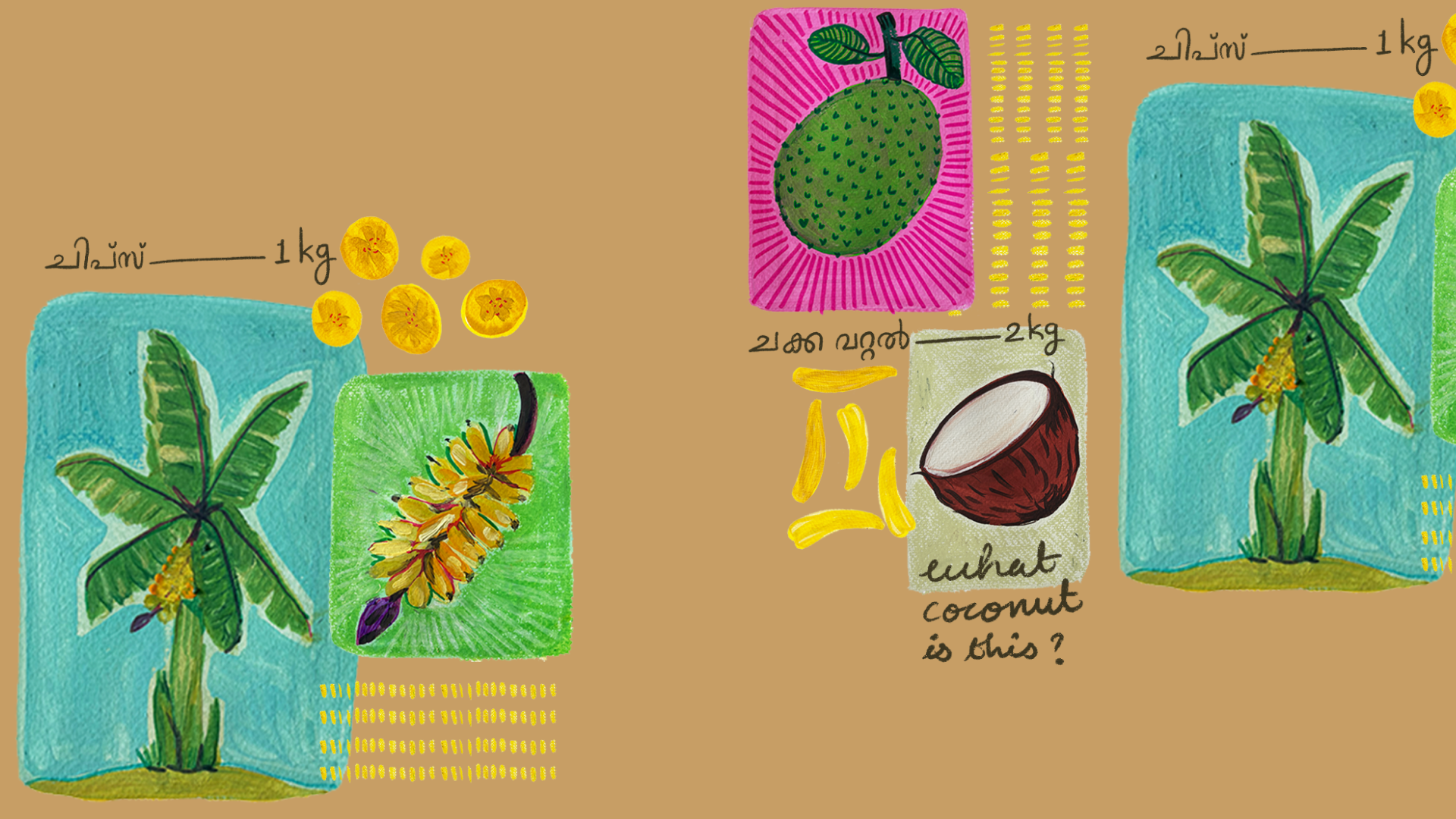 The print is a quiet tribute to those small, unremarkable adventures: naatile pookkal, muddy paths, salty snacks, and the comfort of unstructured time. Rooted in sensory memory and everyday landscapes, the work celebrates stillness, play, and the overlooked magic of simply being present.