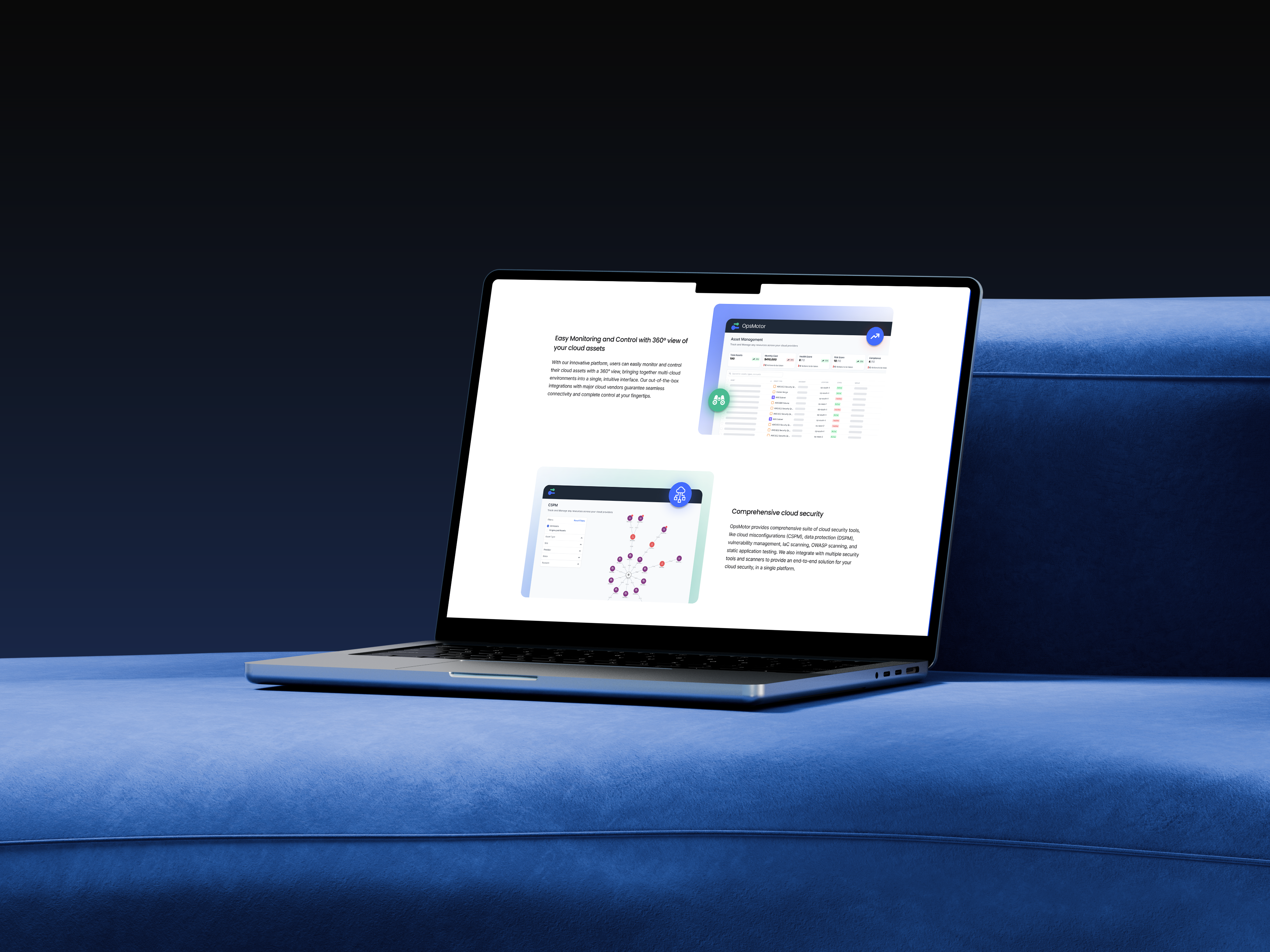 The visual identity is rooted in the ideas of security, control, precision, and adaptability. The logo combines symbolic elements, such as a keyhole form, control cues, and motion-inspired details, to reflect protection, operational control, and speed. A modular construction system ensures balance and scalability across use cases, while the restrained colour palette reinforces trust, transparency, and technical credibility, with accent colours adding energy and dynamism. The typography and overall system were designed to feel modern, legible, and dependable, supporting OpsMotor’s positioning as a single, unified platform that simplifies cloud security without compromising on depth or performance.