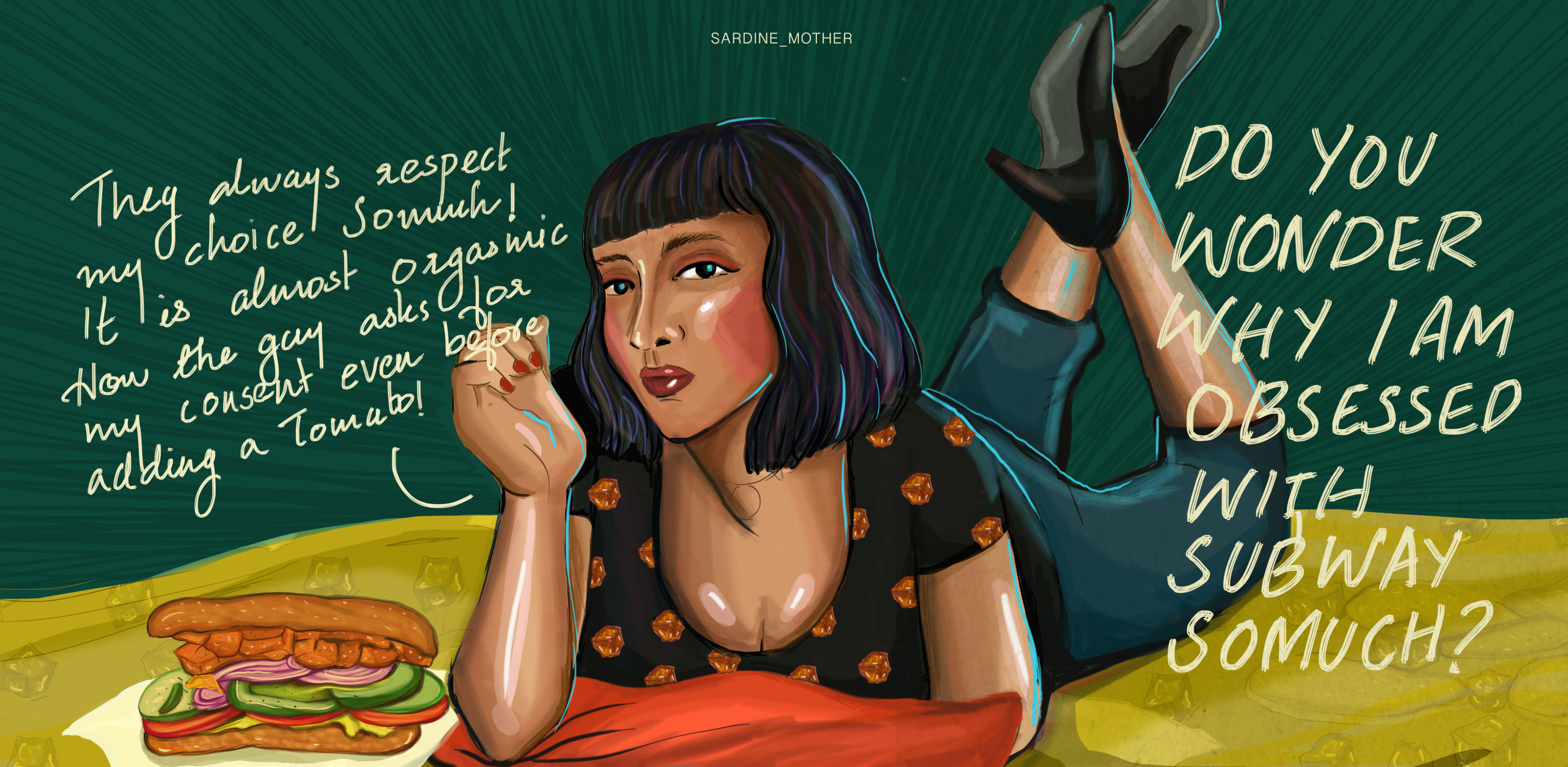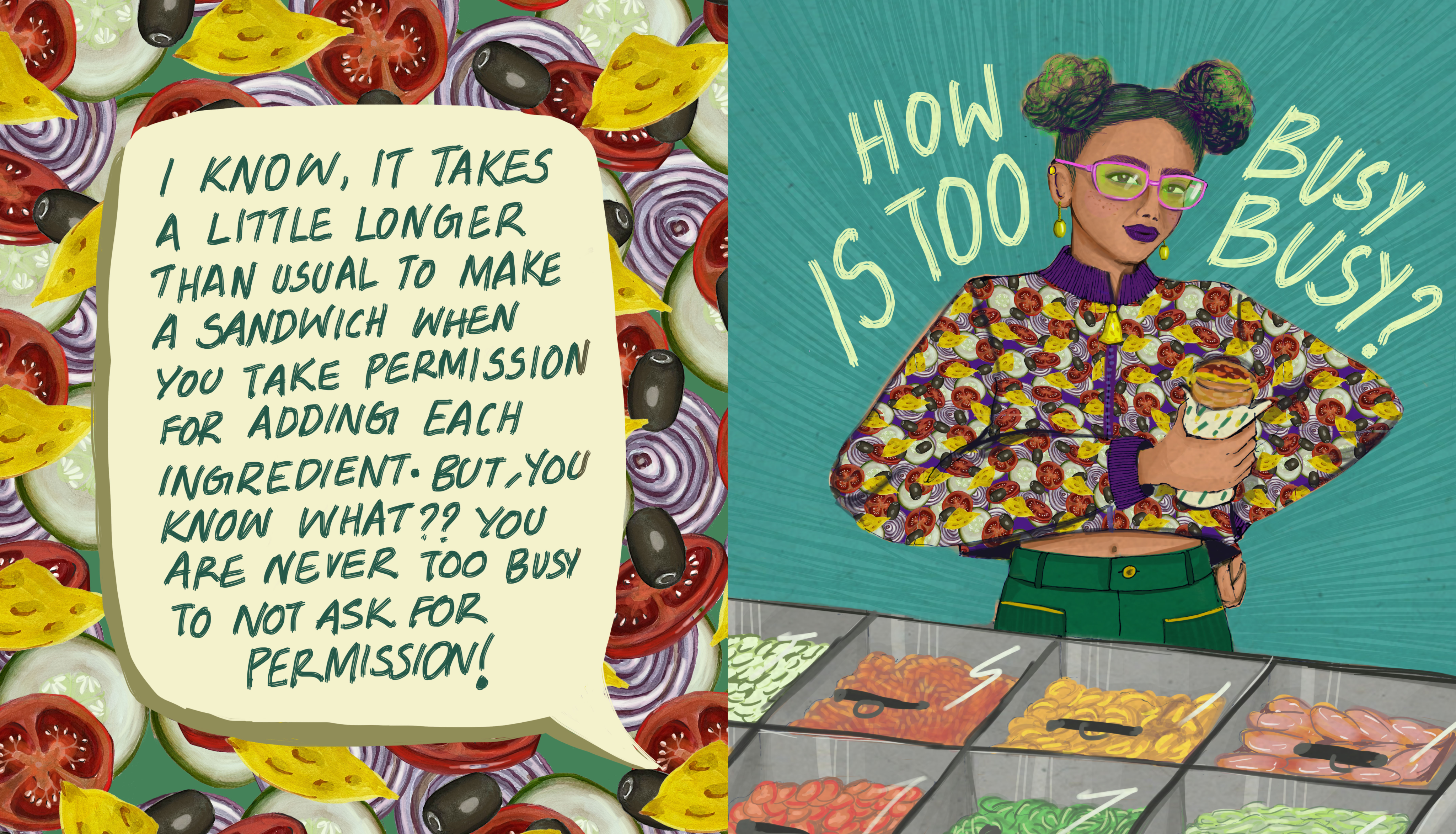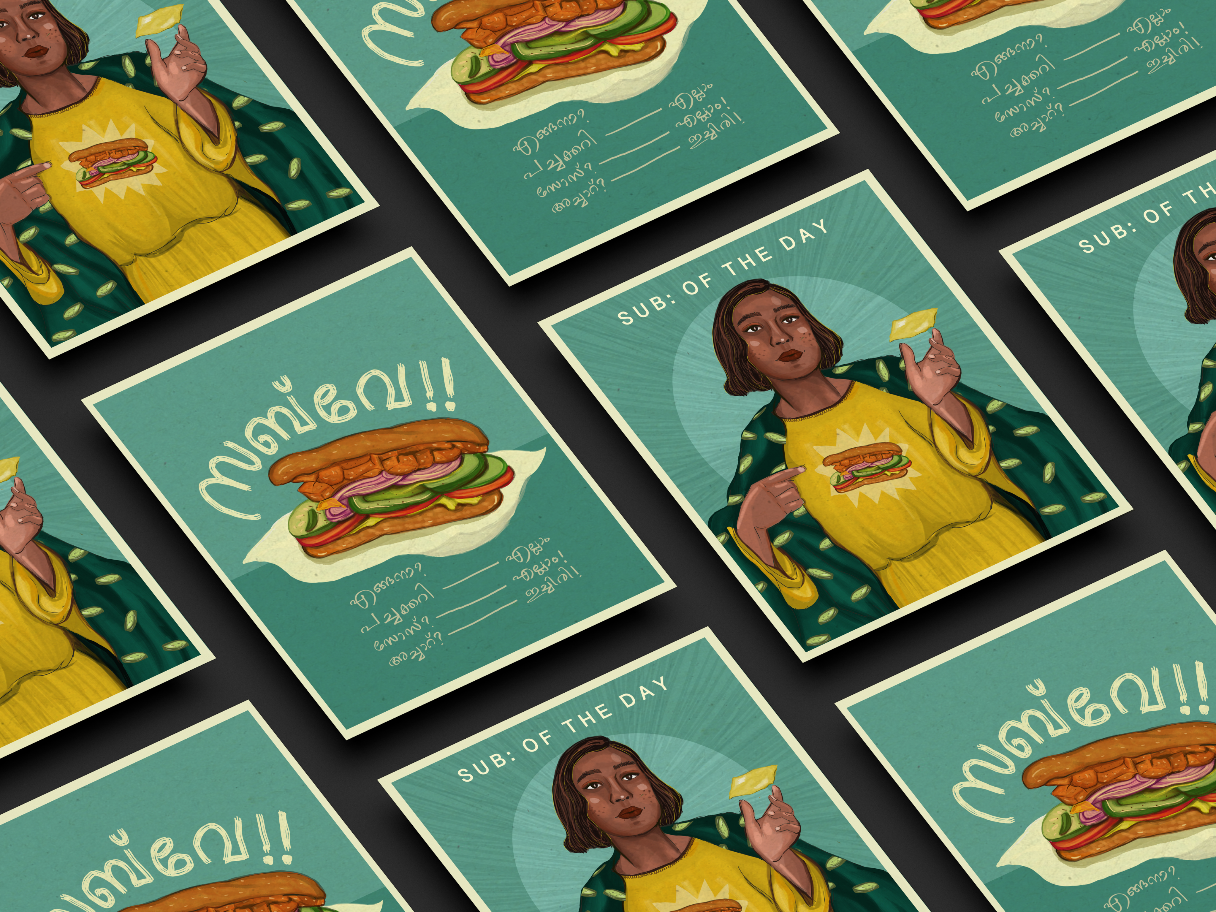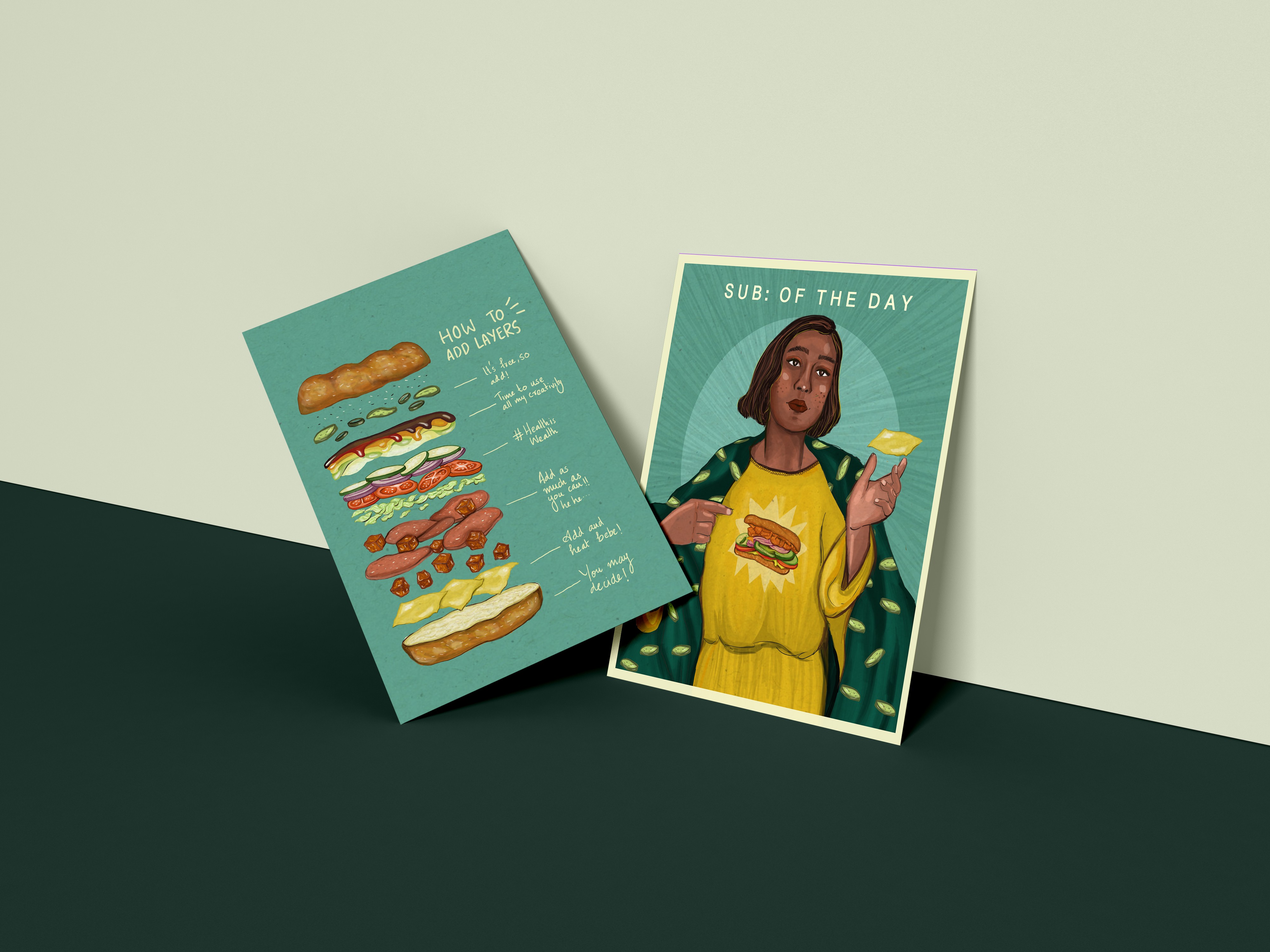 Inspired by Subway’s build-your-own approach, Sub of the Day uses ingredients as symbols for the decisions that shape our lives. Through illustration-led design, custom prints, and experimental accessories, the project highlights how personal choices come together to form unique journeys. Every element is designed to be mix-and-match, reflecting a flexible and personal visual identity. The project sits at the intersection of fashion, illustration, and print design, showcasing a concept-driven approach to branding and creative direction.